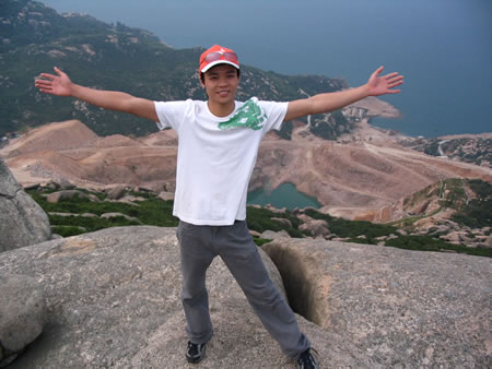 歡呼聲中我們踏上了十一之旅,來到富有豐富人文、歷史景觀的外伶仃島,外伶仃島離香港長洲島只有6海里,主峰伶仃峰高達311.8米,是萬山群島最高峰。站在伶仃峰可清楚的觀望香港的景色(如太平山、青馬大橋等香江景物)。天氣晴朗不起霧的時侯,清晨在山頂等候太陽從大海的地平線上跳出,冉冉升起,整個洋面一片金黃,霞光萬丈,美不勝收,真是一大奇景可惜我們這次沒有看到此景!!。×尕暄笊献钣杏绊,千古傳誦的是文天祥“人生自古誰無死、留取丹心照汗青”這一千古絕唱。這是毛澤東主席生前手書的文天祥《過伶仃洋》詩的石刻。