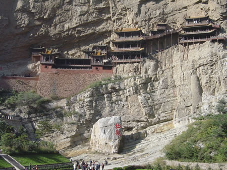 逛完了古城,兄弟們一隊人馬飛奔恒山參加武林大會!到達山腳,被一大奇跡所吸引,不由得停下了腳步。(詩仙李白到此都呆了,以致留下“壯觀”二字都覺得該多一“點”才好)