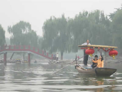 乘坐在輕舟中,蕩于一湖煙波之上,那情那景令人魂?duì)繅衾@