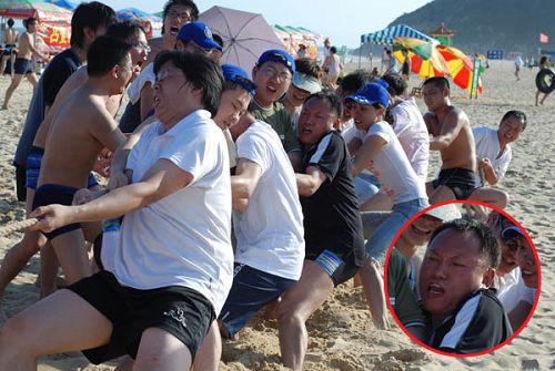 拔河比賽,后面那個(gè)紅臉團(tuán)友注意了,輸就輸唄,不哭。。。不哭。。。