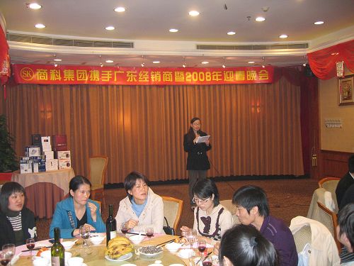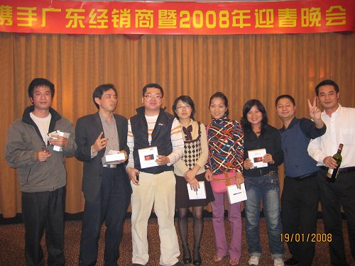 商科廣州分公司為了答謝經銷商在過去的一年中給予的支持和厚愛,于1月19日在同甘同味酒店舉辦了"商科集團攜手廣東經銷商2008年迎春晚會"。參與本次迎春晚會的嘉賓有商科集團董事長孫武源先生、商科集團副總經理劉險峰先生、商科集團廣州分公司經理 李小剛先生、商科集團市場部經理 陳濤女士、商科集團臺電外設事業部產品經理 呂家起先生以及70多位遠道而來的廣東省經銷商代表們。