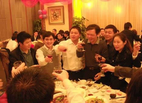 晚會(huì)的第二波高潮開始了,孫武源先生和劉險(xiǎn)峰先生逐一為各代理商敬酒。