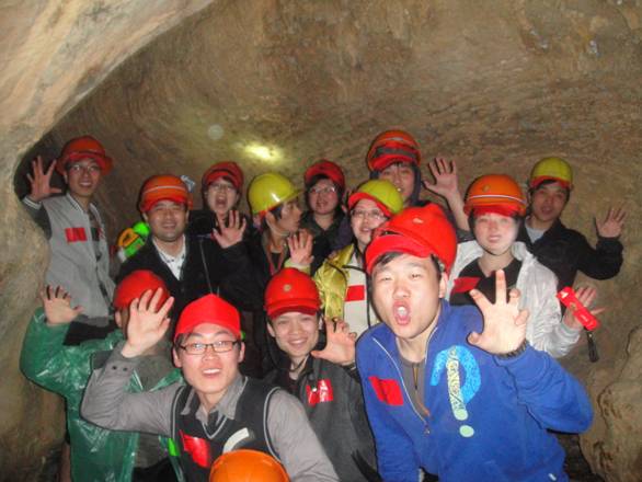 經(jīng)過艱難的挑戰(zhàn),大家在洞里露出了勝利的微笑。