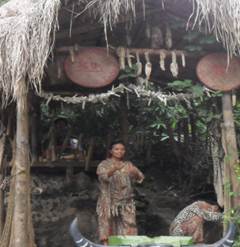 在節奏明快的“妖鼓”下,穿著色彩斑斕的獸皮,手持鋒利的長矛在山林里狩獵,燒蛇烤蚌為食,長唱著人與自然和諧的漓江漁歌和桂山獵謠。在這里,可以見證萬年前桂林甑皮巖人的生活,品味靈山秀水后歷史的滄桑與厚重,并見識現代社會原始部落的粗獷,感覺率真淳樸的土人的神秘和玄奇。