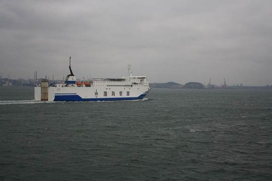 別具一格的有軌電車,據(jù)說是30年代一直沿用至今。(右上角黃色的招牌居然是“北京東來順”) 中午13:00登船離開大連。