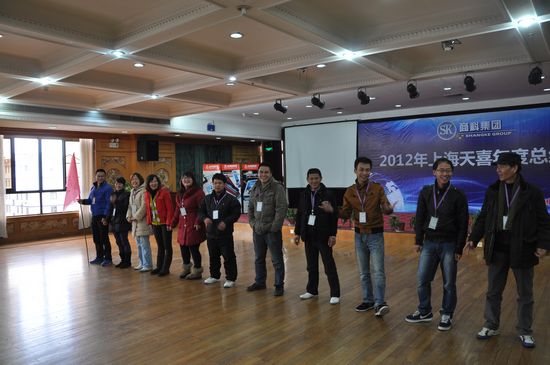 2013年1月13日上海分公司在坤明湖度假村召開了一場別開生面的年度總結會。會議包括上午的“2012年度總結會議”、下午的“室內激情拓展活動”還有晚上的“2013年天喜春節聯歡晚會”。