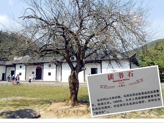 1927.10.24毛主席來到井岡山第一個住所—白屋,房前一棵大樹下的“讀書石”。