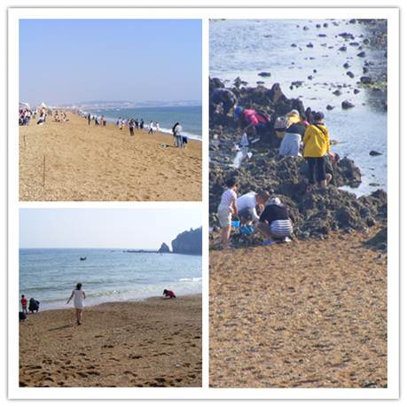 第二天我們全體來到了著名的享有東方迪士尼之稱的大連發現王國游樂園,因為此次出行我帶著剛滿4周歲的兒子因此這個游樂場只能帶著他玩一些小孩的項目,這些項目非常少,所以這個行程我們很快結束了,但是在哪里還是體會到了國慶節的人山人海。因為我們結束的早出來問了當地的人告訴我們前邊走5分鐘就是著名的大連金沙灘,來到大連不看看海是很遺憾的,雖然是深秋的大連但是海水在午后陽光的照射下還是可以下去的,真正的體會到了天藍藍海清清啊!