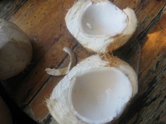 青青的椰青,看著都覺得新鮮,破開喝里面的椰子汁,那個清甜,在其他地方都絕對喝不到的,喝完還可以嘗嘗嫩嫩的椰子肉,的的確確也是一美味啊。