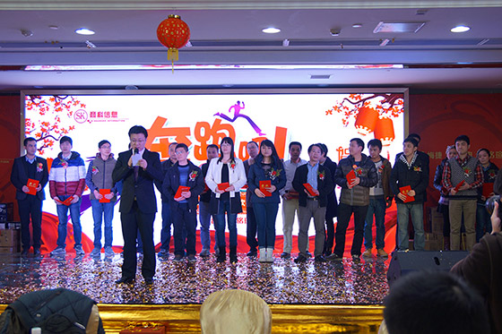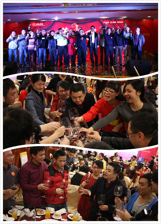 看完精彩的節(jié)目,天色已完全暗下來,大家已饑腸轆轆,酒店已經(jīng)開始端上可口的飯菜。晚宴開始前,孫總上臺為大家獻上新年的祝福,并攜同各部門經(jīng)理上臺為大家祝酒。祝酒結束,晚宴正式開始