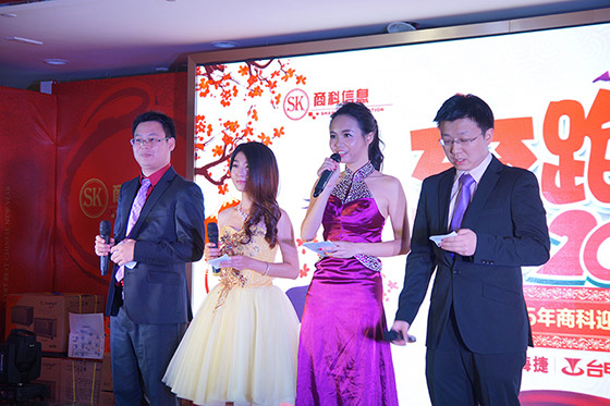 隨著人員的到來,商科集團2015年迎春聯(lián)歡會在下午3點鐘正式開始。隨著四位主持人也閃亮登場,這場盛會拉開了序幕!