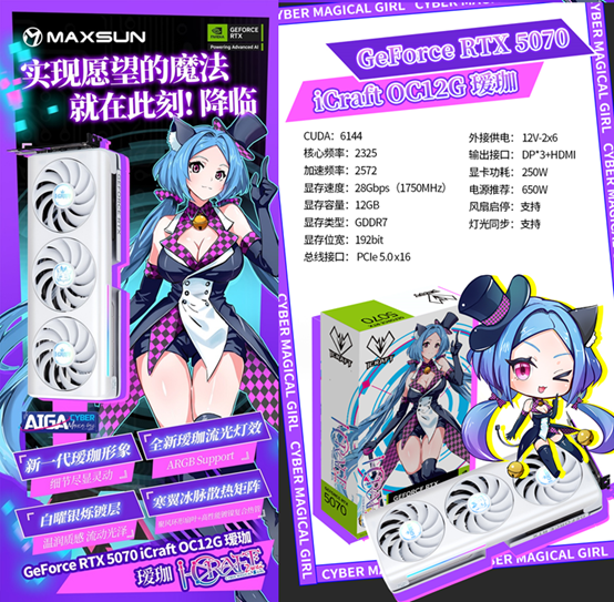 《賽博朋克2077》的五周年是新故事的開端,年末的硬件煥新則是體驗(yàn)升級的基石。銘瑄GeForce RTX 5070 iCraft OC12G 璦珈顯卡,無論是應(yīng)對游戲的高規(guī)格畫面需求,還是發(fā)揮各項(xiàng) NVIDIA 技術(shù)的潛力,都能輕松勝任。這個(gè)年末,就讓這款顯卡為你的游戲裝備注入全新活力,在賽博世界的霓虹中暢享強(qiáng)悍體驗(yàn)吧!